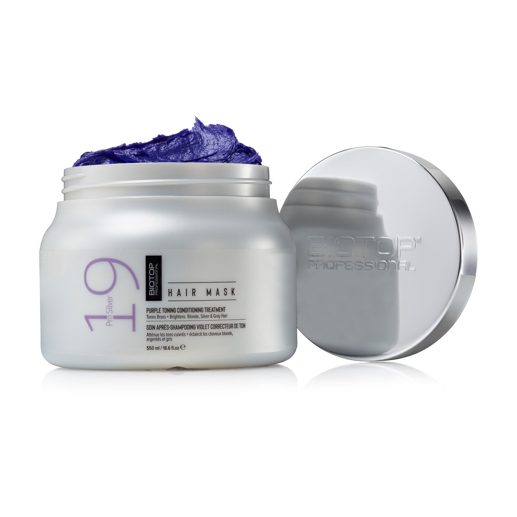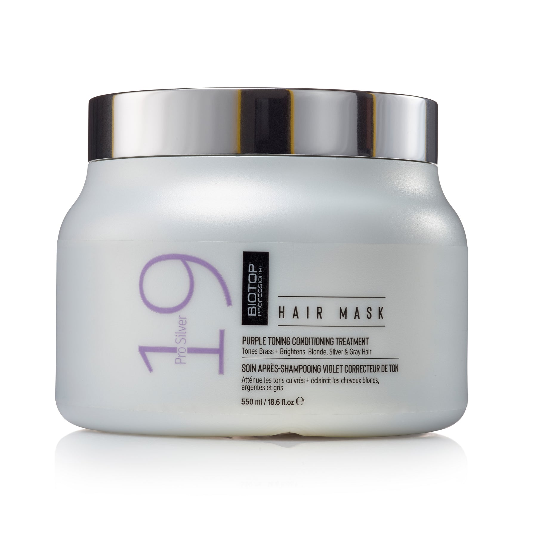 מסכה לשיער Pro Silver 19 (פרו סילבר 19) לשיער בלונד, פלטינה, אפור, לבן או כסוף, מנטרלת את הגוונים הצהובים והכתמתמים הלא רצויים ומעניקה לשיער הזנה עמוקה ולחות. הודות לפורמולה המכילה שילוב של וויטמין E ושמן זרעי חמניות ומועשרת גם באומגה 3, המסכה מסייעת להזין, לשמור על גוון צבע בהיר ומאוזן ולהעניק ברק, רכות וגמישות לשיער.